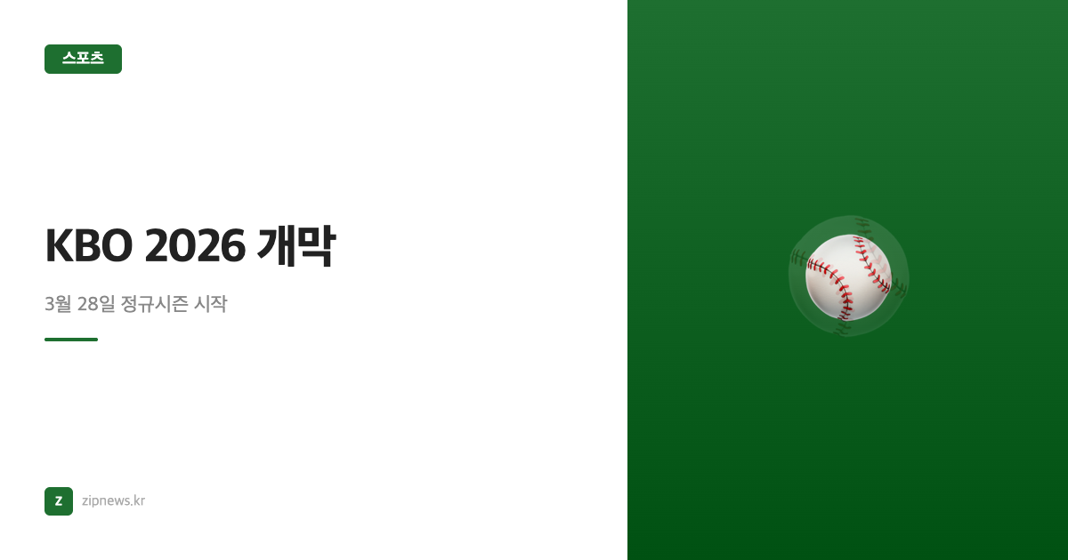 | 정규시즌 | 3/28(토) 개막 | 팀당 144경기 / 총 720경기 | 10개 구단 참가 |